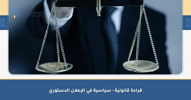 Legal-Political Reading of the Constitutional Declaration – Syrian Center for Media and Freedom of Expression The Syrian Center for Media and Freedom of Expression (SCM) released a legal and political analysis of the constitutional declaration issued in Syria following the military overthrow of the Assad regime. The center highlights that this declaration fails to meet essential requirements for a transition to a democratic system, noting that a provisional constitutional document was introduced without genuine inclusion of political and societal forces. Furthermore, the military leadership opted for a “Victory Conference,” attended only by armed factions, instead of convening a broad national forum.